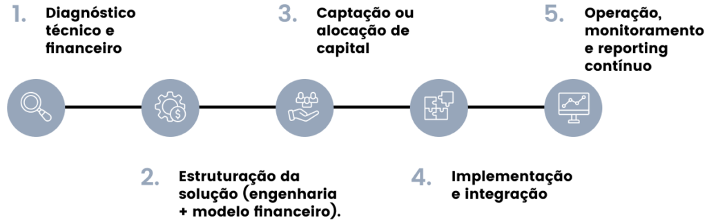 Da engenharia ao modelo financeiro, estruturamos projetos que resolvem problemas reais de energia, telecom e operação crítica.